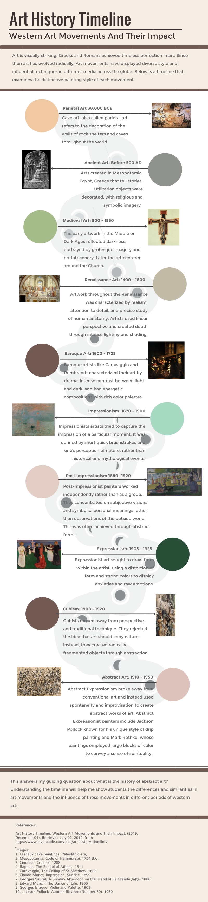 Art History Timeline: Western Art Movements and Their Impact. (2019, April 12). Retrieved July 02, 2019, from https://www.invaluable.com/blog/art-history-timeline/